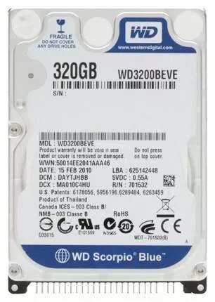 Носитель информации HDD WD 320Gb, IDE, 2.5", 5400 rpm, 8Mb buffer, Scorpio Blue, 9.5mm