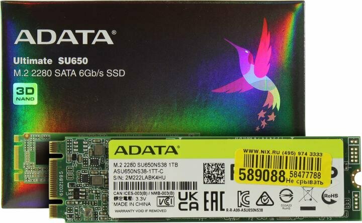 Купить Накопитель SSD M.2 2280 ADATA ASU650NS38-1TT-C Ultimate SU650 1TB SATA 6Gb/s 3D TLC 550/510MB/s IOPS 80K/60K MTBF 2M 420 TBW