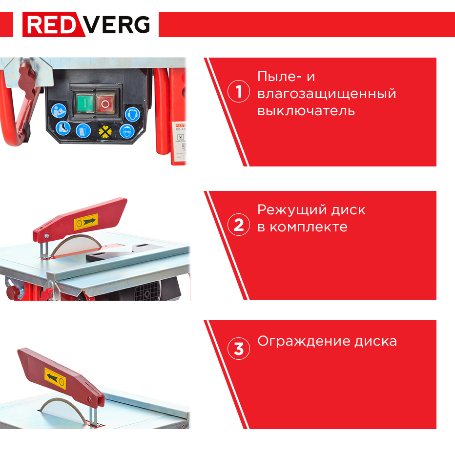 Плиткорез RedVerg RD-184303 настольный (450Вт,2800об/мин,диск180х22,2мм,пропил34мм) 7кг интересное: