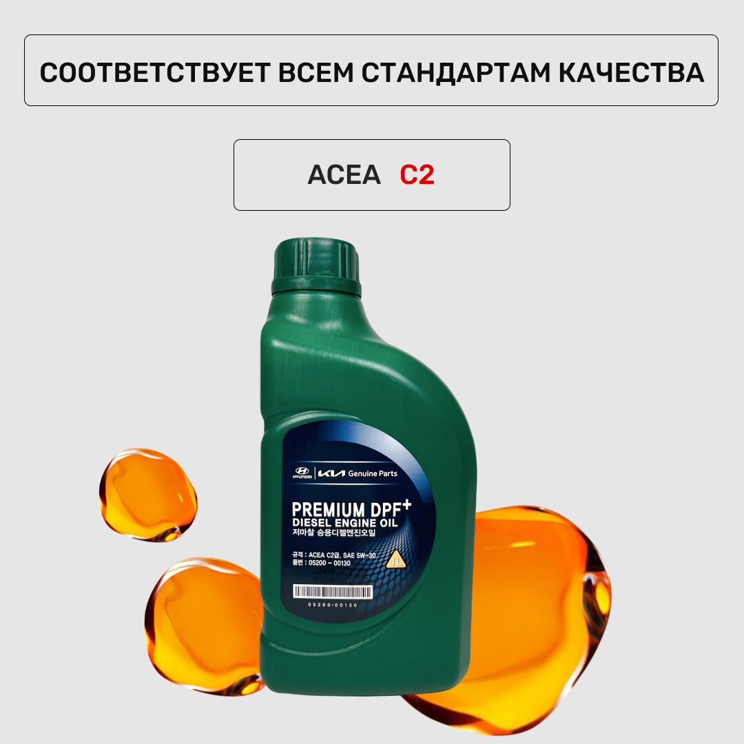 масло моторное hyundai/kia premium dpf+ 5w-30 синтетическое 1 л 05200-00130