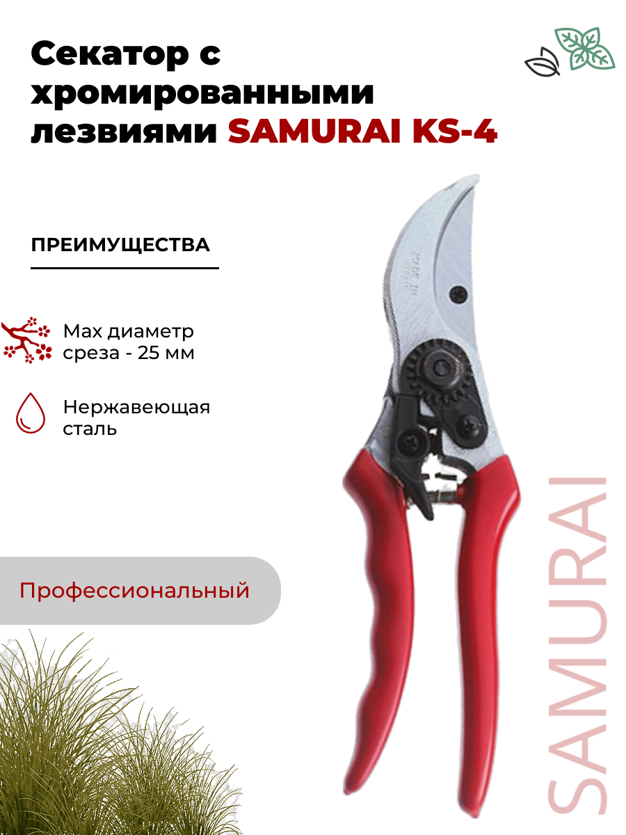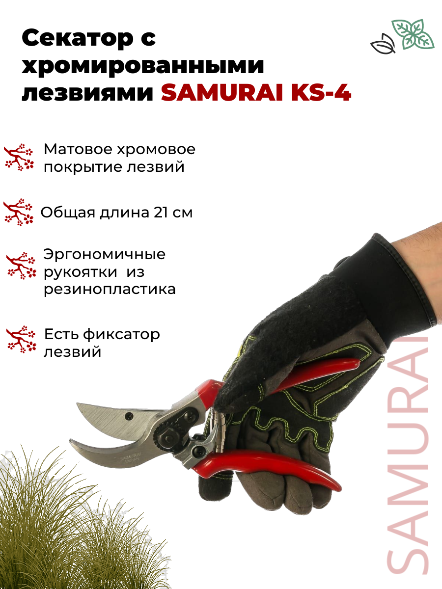 Секатор садовый KS-4 с хромированными лезвиями, SAMURAI, Япония
