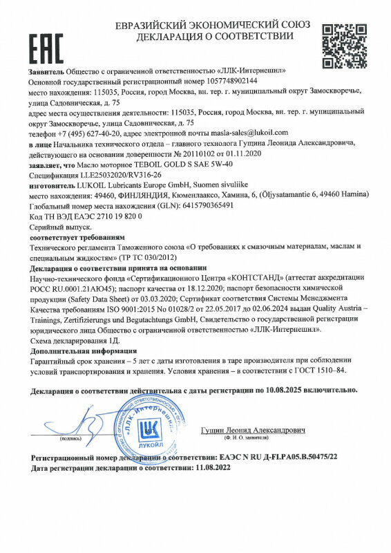 | Допуски OEM | VW 502.00/505.00 / MB 229.3 / Renault RN 0700 / GM-LL-B-025 / BMW Longlife-98 |
