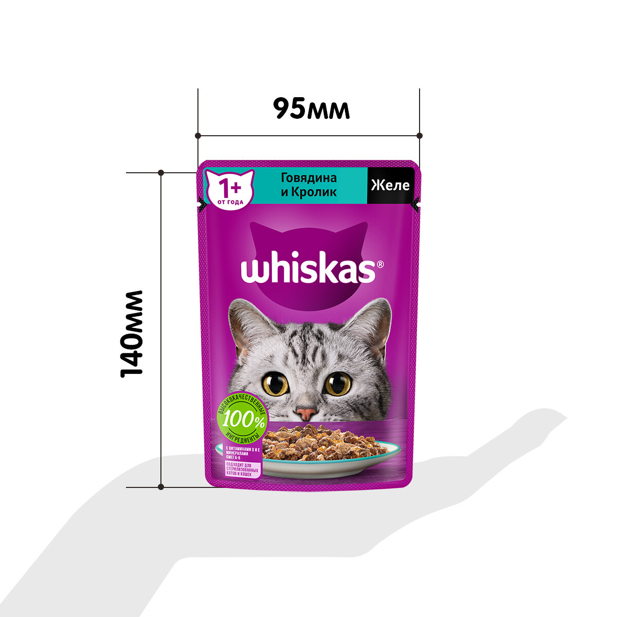 Влажный корм Whiskas для кошек, говядина/кролик, желе, 75 г
