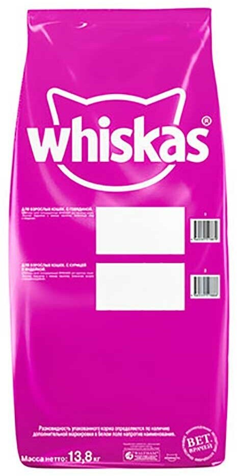 Сухой корм Whiskas для кошек, говядина паштет, подушечки, 13,8 кг Whiskas 10067808 .