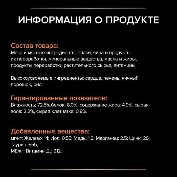 | Состав | мясо и продукты переработки мяса, яйца и продукты переработки яиц, злаки, минеральные вещества, масла и жиры, витамины, высокоусвояемые ингредиенты: сердце, печень, яичный порошок, рис |