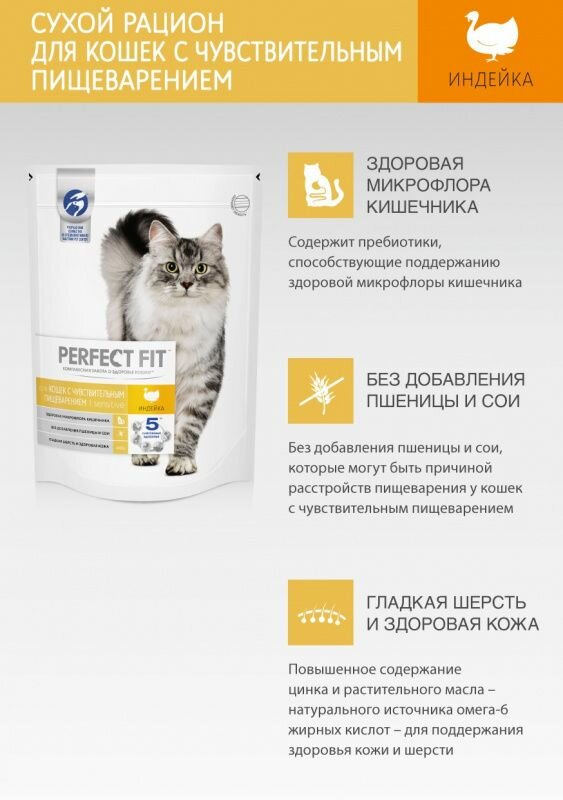 Влажный корм Perfect Fit для взрослых кошек, с чувствительным пищеварением, с индейкой, 75 г