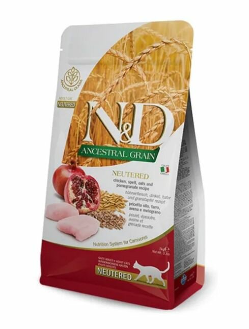 FARMINA CAT N&D ANCESTRAL GRAIN NEUTERED CHICKEN & POMEGRANATE низкозерновой для взрослых кастрированных котов и стерилизованных кошек с курицей и гранатом (1,5 кг)