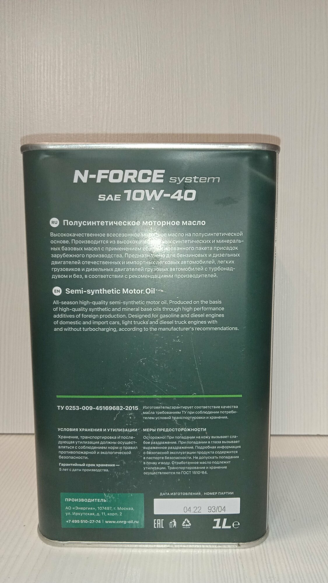 Масло моторное C.N.R.G. N-Force System 10W-40 SG/CD кан. 1л