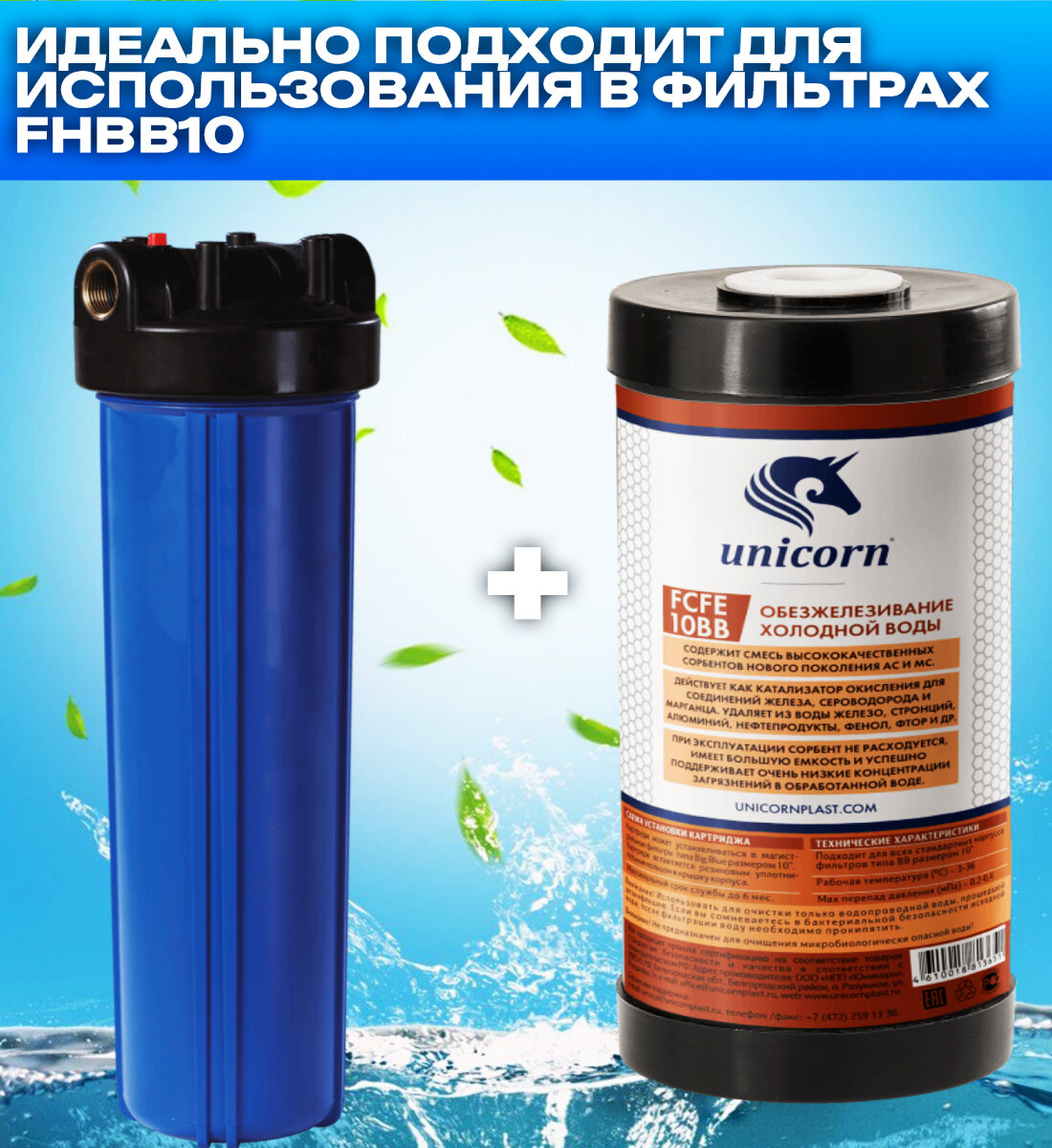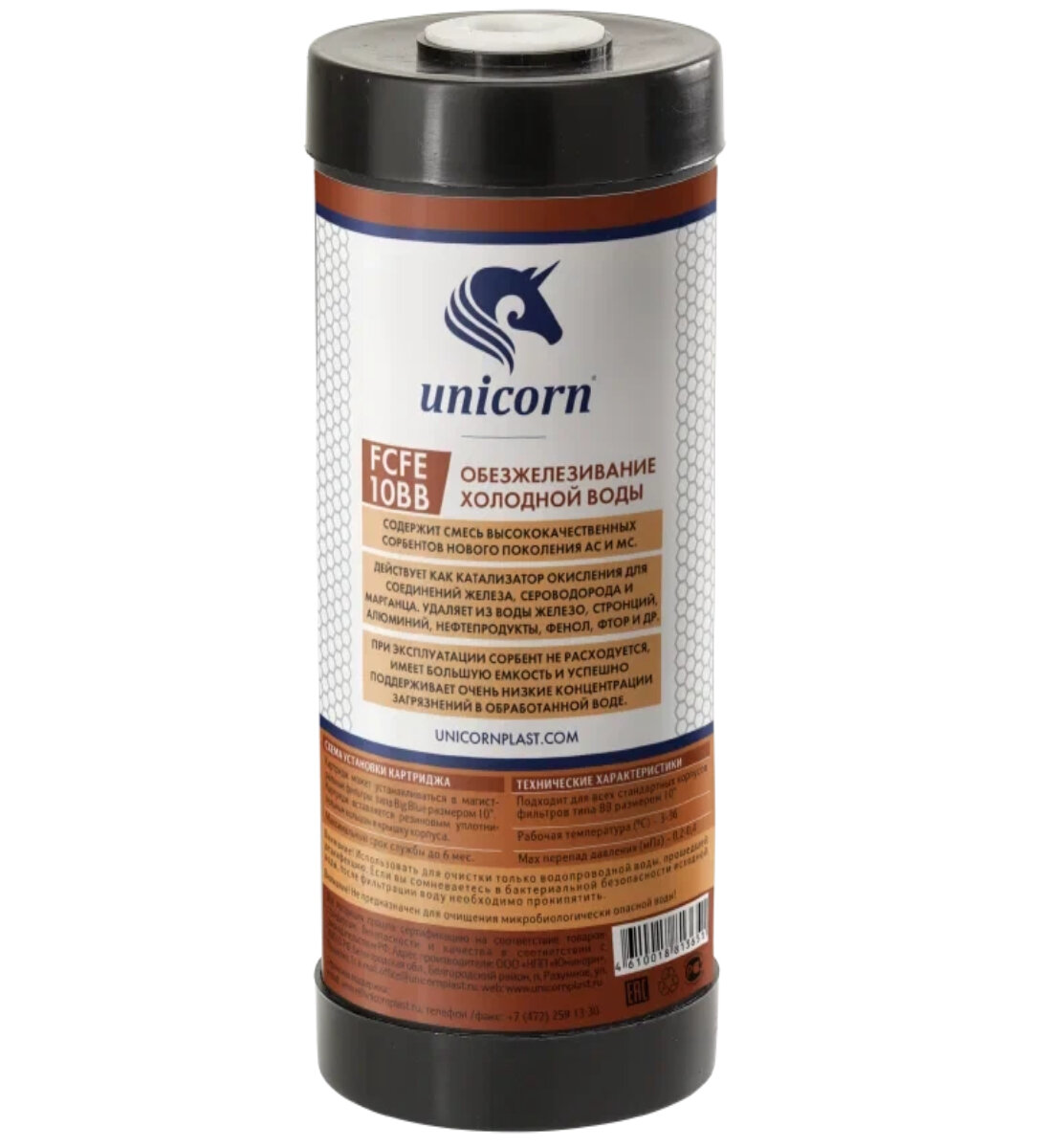 Картридж для удаления железа, 10ВВ, Unicorn (Картридж из спеченного в блок активированного угля) (FCFE10ВВ)