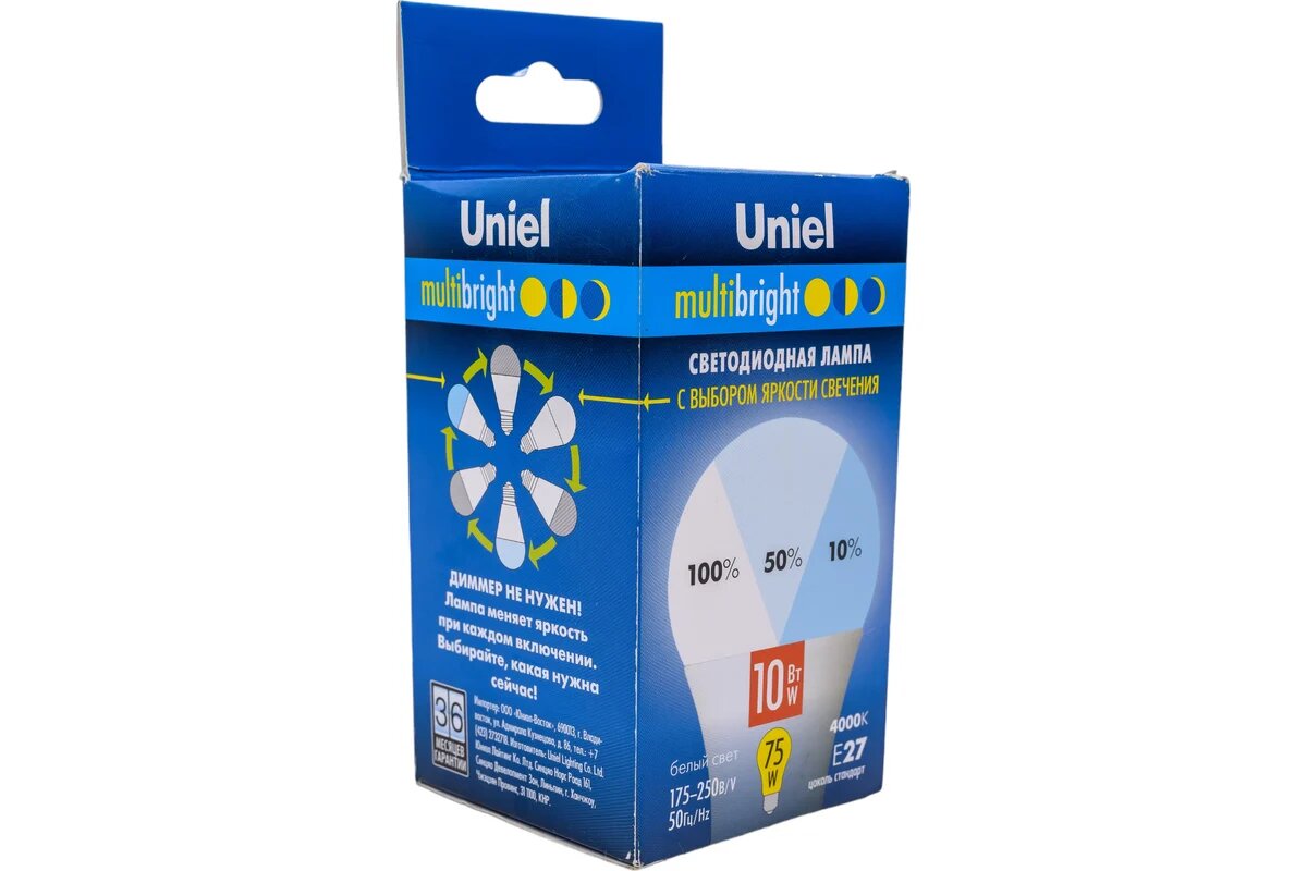Лампа светодиодная с трехступенчатым диммером 100-50-10 LED 10вт 175-250В форма А 850Лм Е27 4000К Multibrigh, UNIEL UL00002372 (1 шт.)