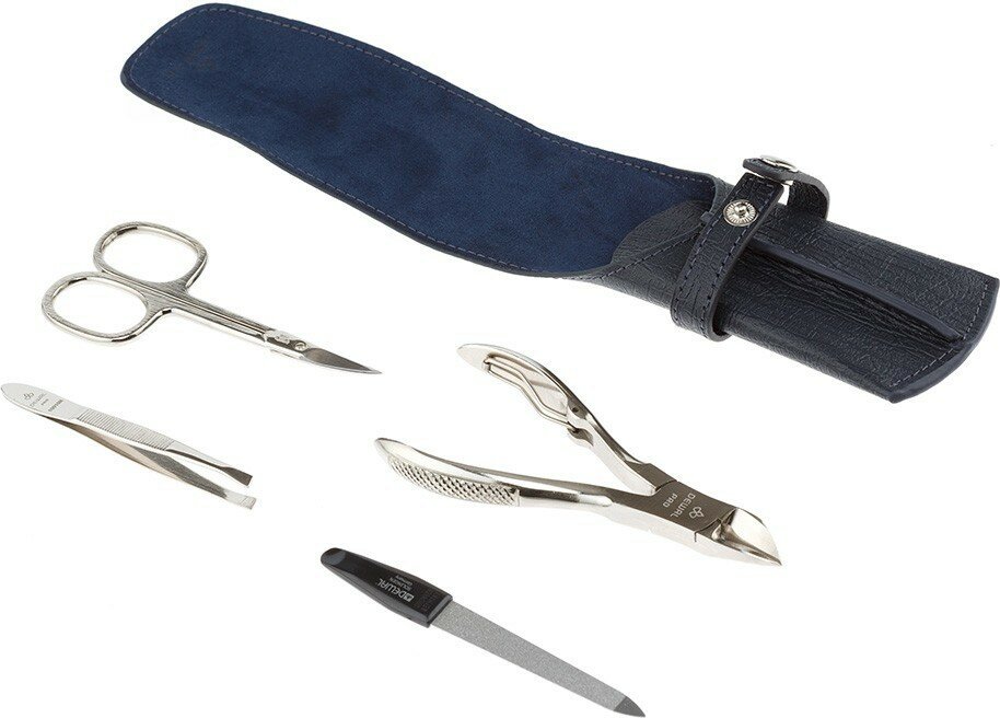 Маникюрный набор DEWAL серии "Современная классика" 4 предмета, футляр натуральная кожа, цвет синий (901BLUE)