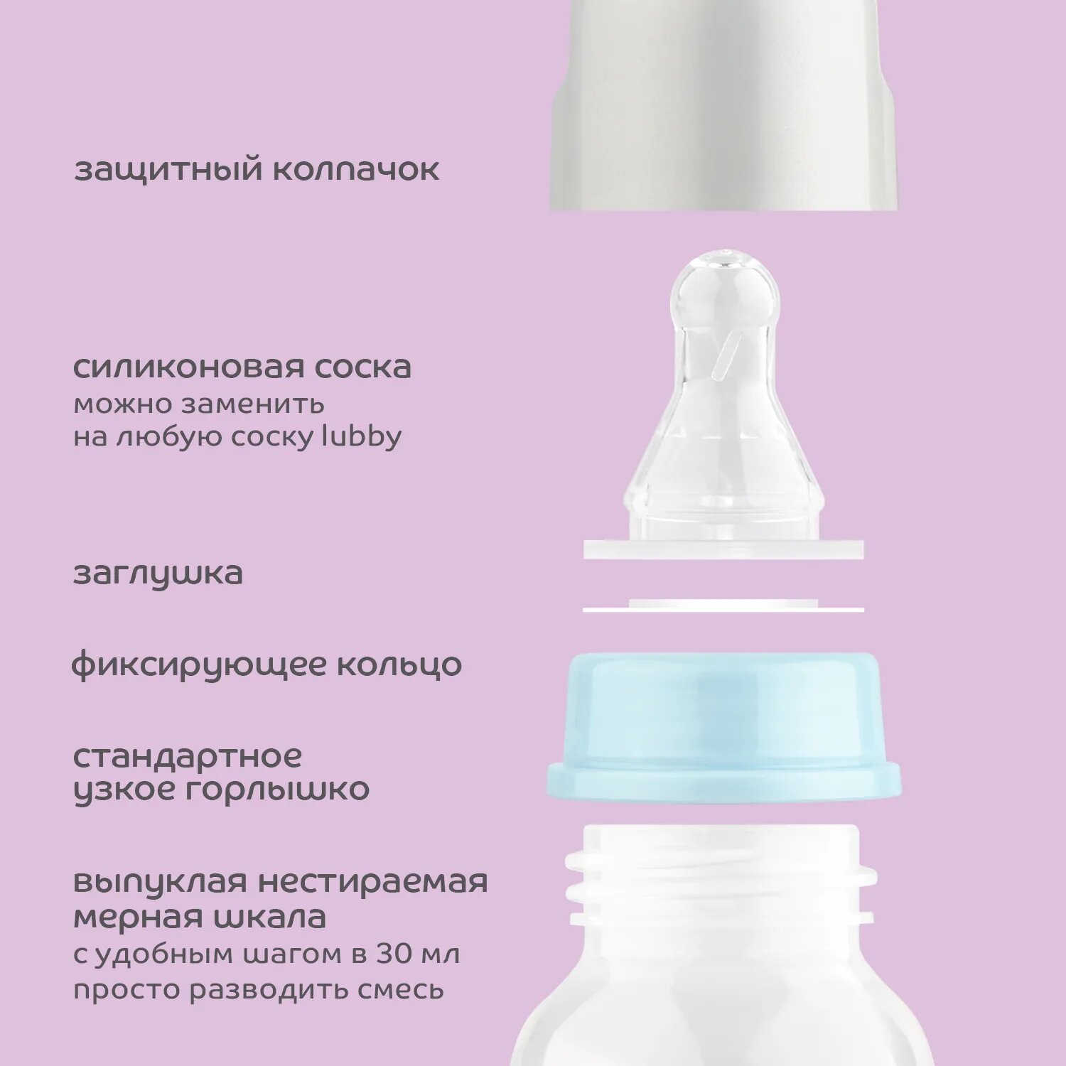 Бутылочка для кормления Lubby с силиконовой соской, от 0 мес., 125 мл
