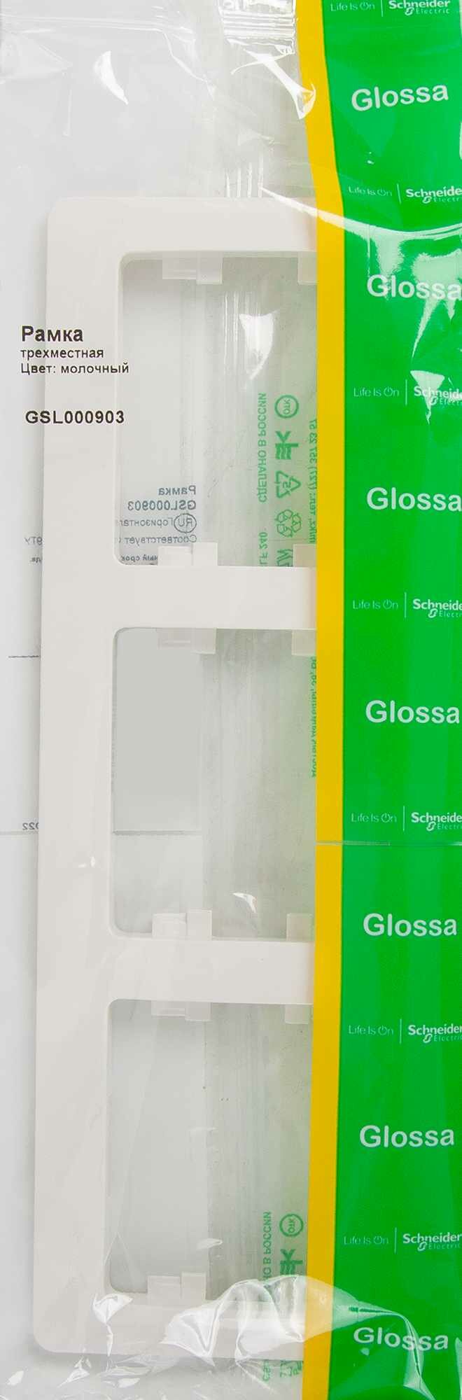 GLOSSA 3-постовая рамка, горизонтальная, молочный, SCHNEIDER ELECTRIC GSL000903 (1 шт.)