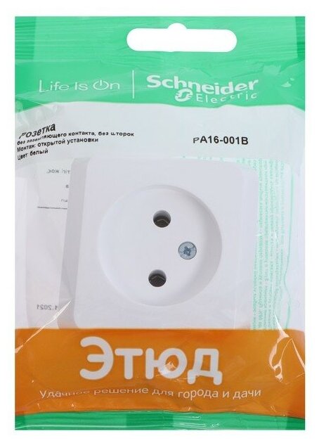 Розетка без заземления Этюд белый Шнайдер электрик накладная, PA16-001B
