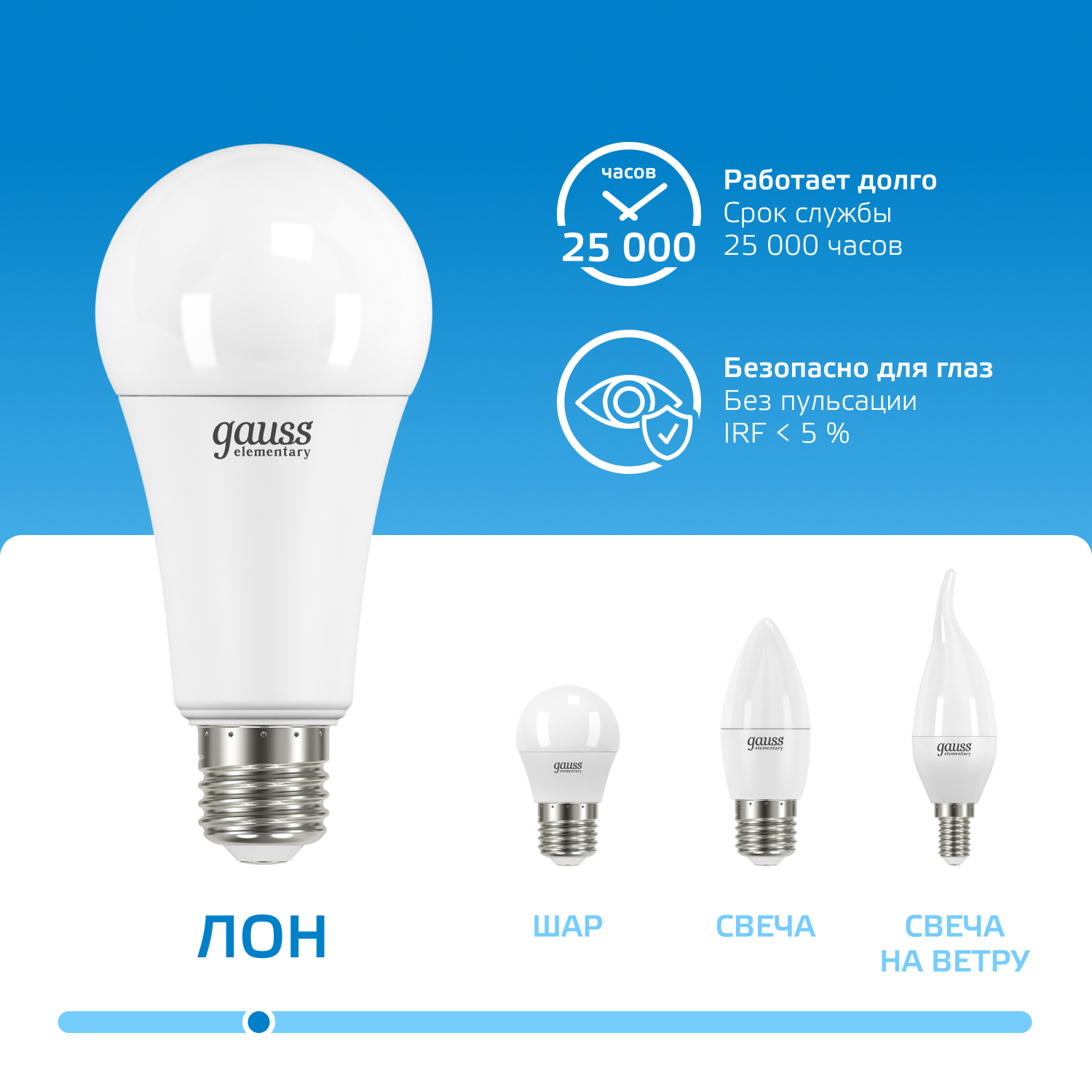 (2 шт)Лампа Gauss Elementary A70 30W 2390lm 6500K E27 LED 1/10/50
