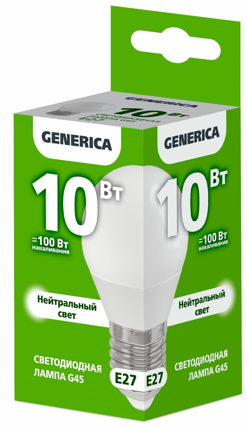 Лампочка светодиодная GENERICA Е27 10Вт=100Вт 4000К нейтральный свет шар (комплект из 10 шт.)