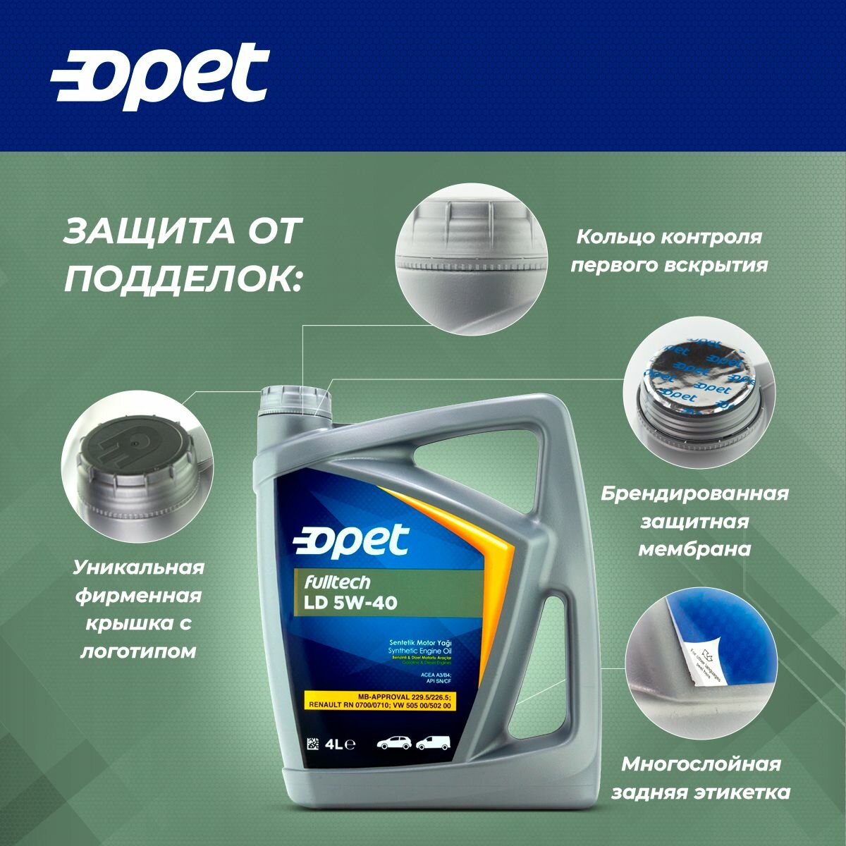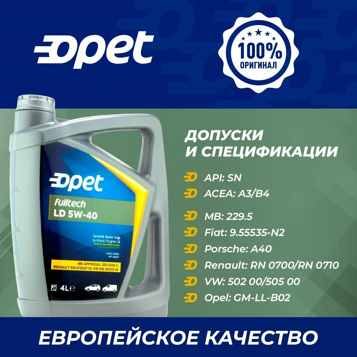 OPET 5w-40 Fulltech Ld A3/А3/B4 • Sn (Синт. Мотор. Масло) 4л