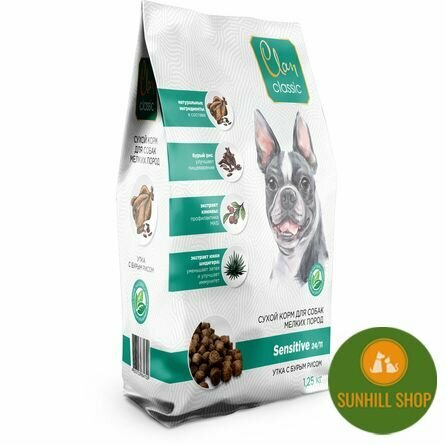 Корм сухой для мелких пород clan classic sensitive с уткой и бурым рисом, 1,25кг