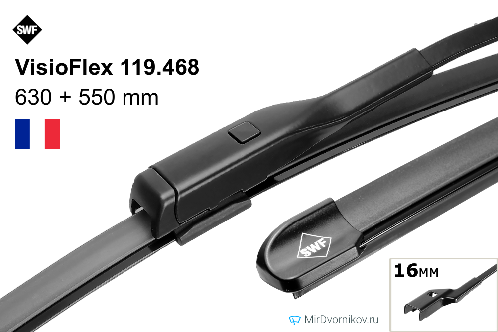SWF / 119468 / Комплект Щеток стеклоочистителя VISIOFLEX бескаркасный 630мм/25`+550мм/22` (Узкая кнопка 16)