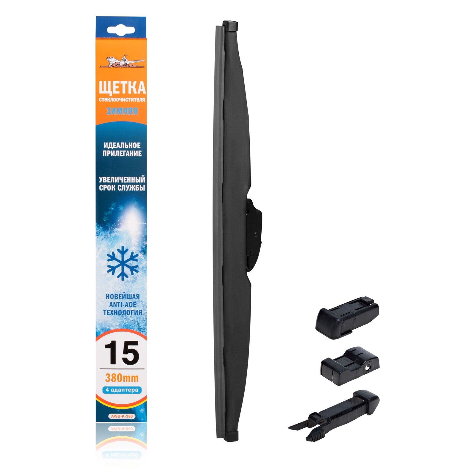 Щетка стеклоочистителя 380 мм (15") зимняя, 4 адаптера AWB-W-380 AIRLINE
