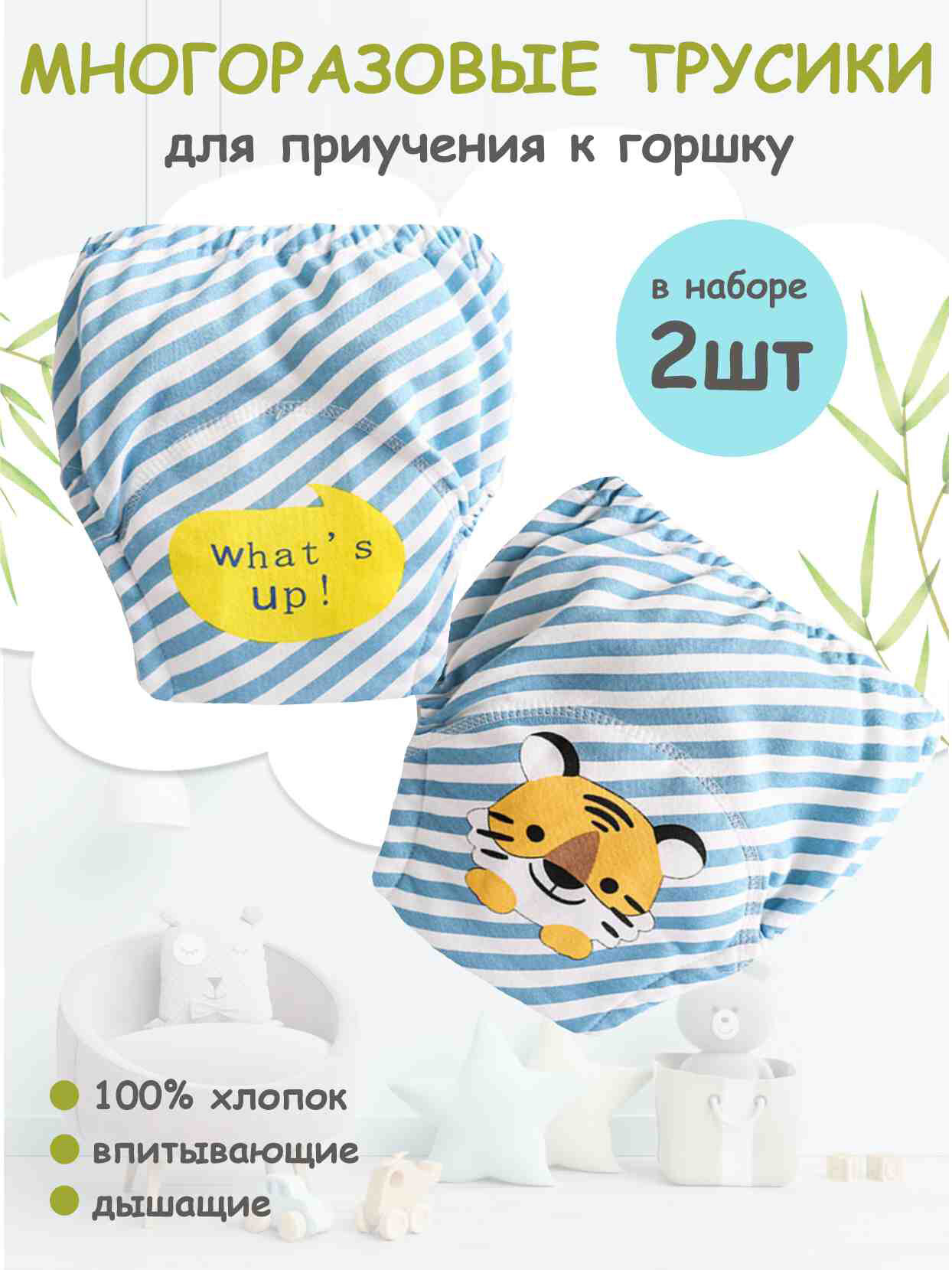 Купить Трусики для приучения к горшку набор 2 шт. "Тигренок". Размер 110 (16-20 кг)/тренировочные, многоразовые, впитывающие трусики подгузники