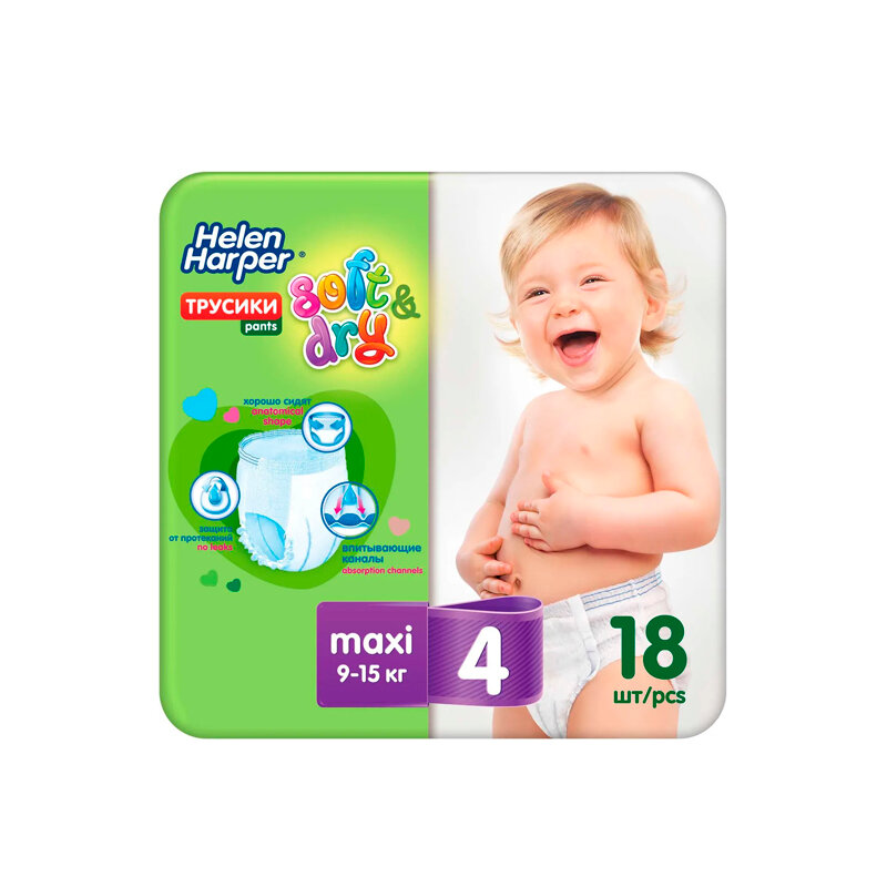 HELEN HARPER Детские подгузники-трусики Soft & Dry maxi 9-15кг. (18 шт.)