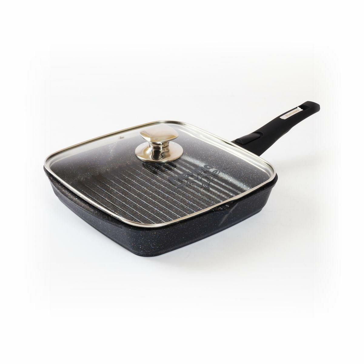 Сковорода-гриль квадр. 28*28 см Гранит black со съемной ручкой и стекл. крышкой арт. с068802