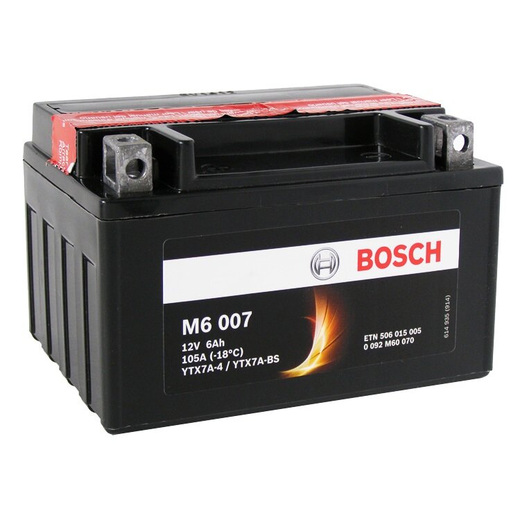 BOSCH 0 092 M60 070 0 092 M60 070_аккумуляторная батарея! рус 6Ah 105A 150/87/93 YTX7A-4 YTX7A-BS moto AGM\