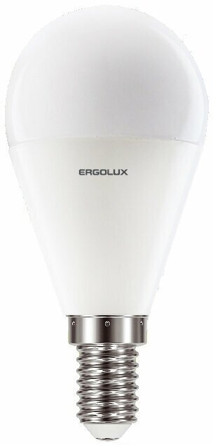 Светодиодная лампа Е14 9Вт ERGOLUX 13175 LED-G45-9W-E14-6K, 6500K, 875Лм, холодный белый, шар