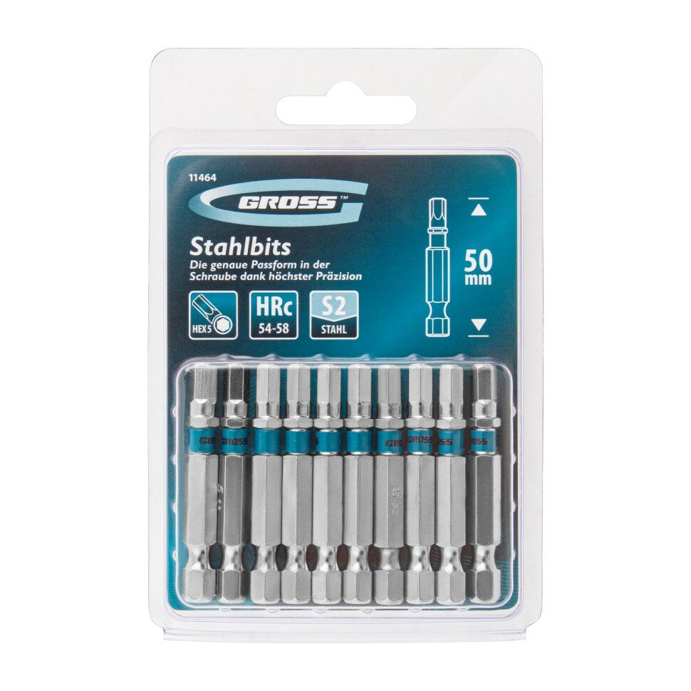 Набор бит HEX 5 х 50, сталь S2, 10 шт. Gross