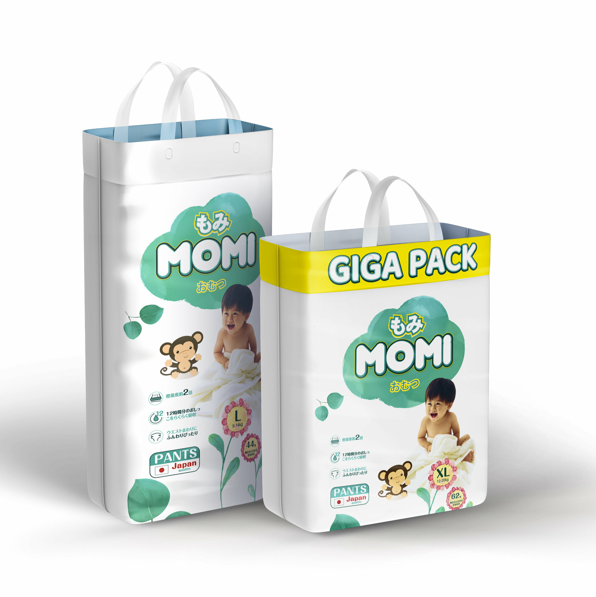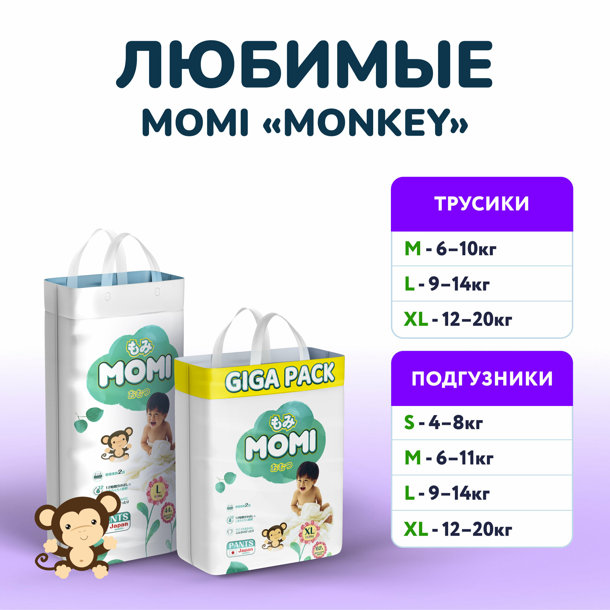 MOMI Monkey GIGA PACK подгузники-трусики XL (12-20 кг), 62 шт