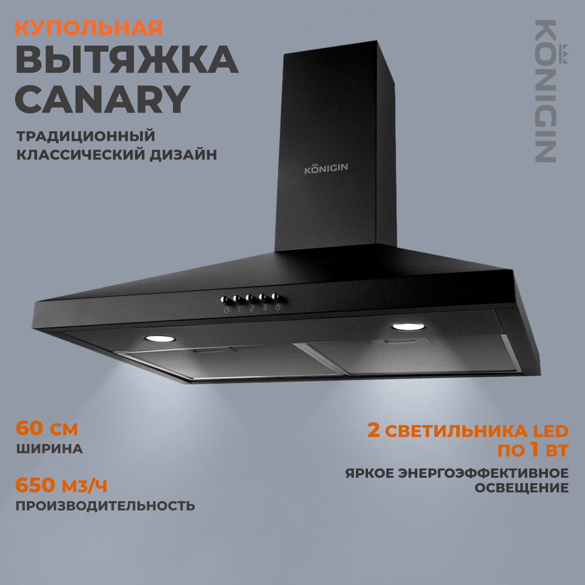 Вытяжка кухонная 60см Konigin Canary Black интересное: