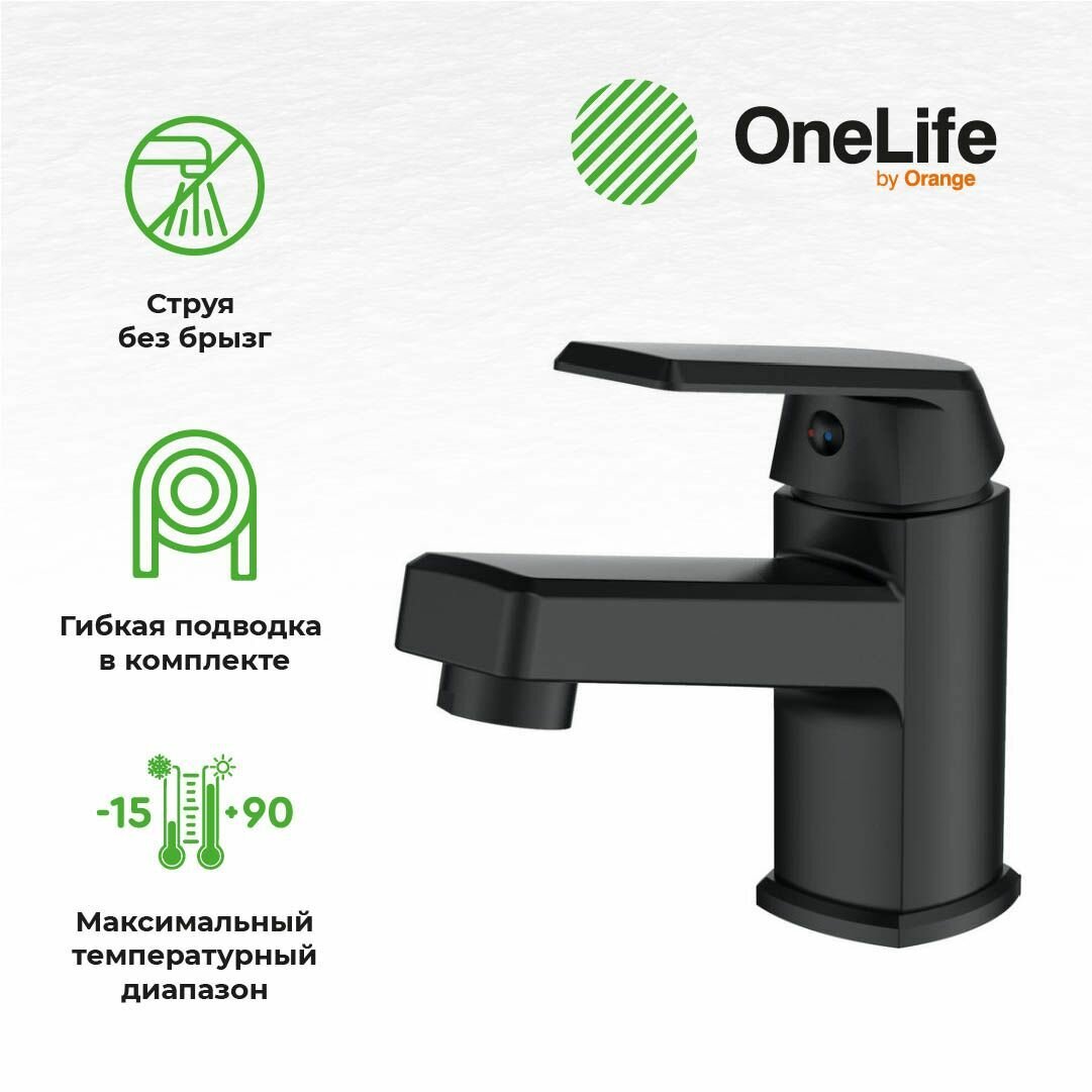 Смеситель для раковины Orange OneLife черный матовый P02-021b