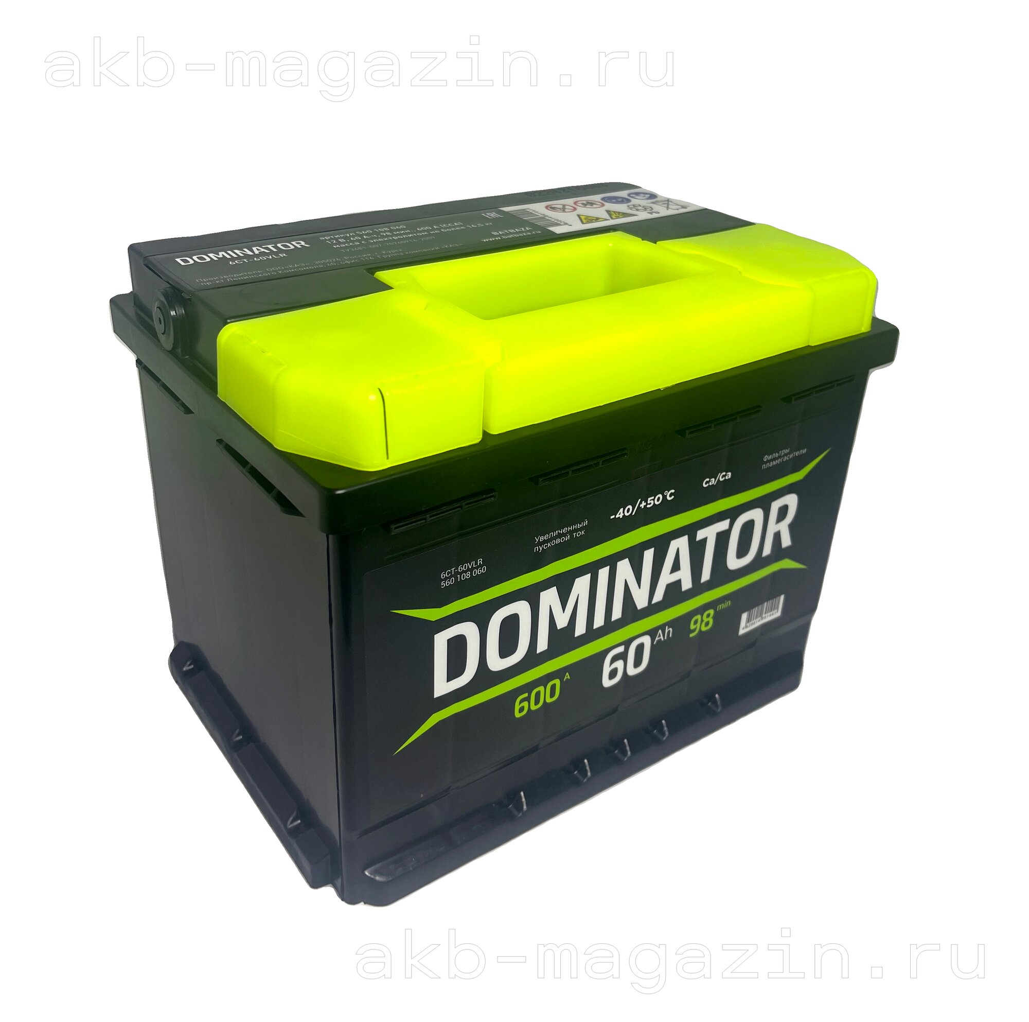 DOMINATOR 560108060 Аккумулятор 6СТ-60VLR 60Ah 600A 242х175х190 полярность 0 клеммы A тип крепления В3/В13