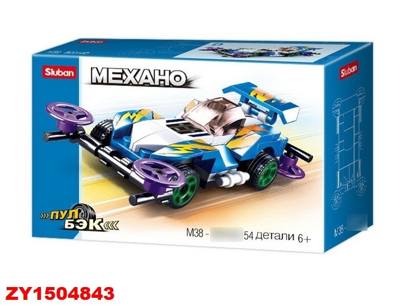 Конструктор пластиковый Sluban - Механо, Гонка, инерционный, 54 детали, 1 шт