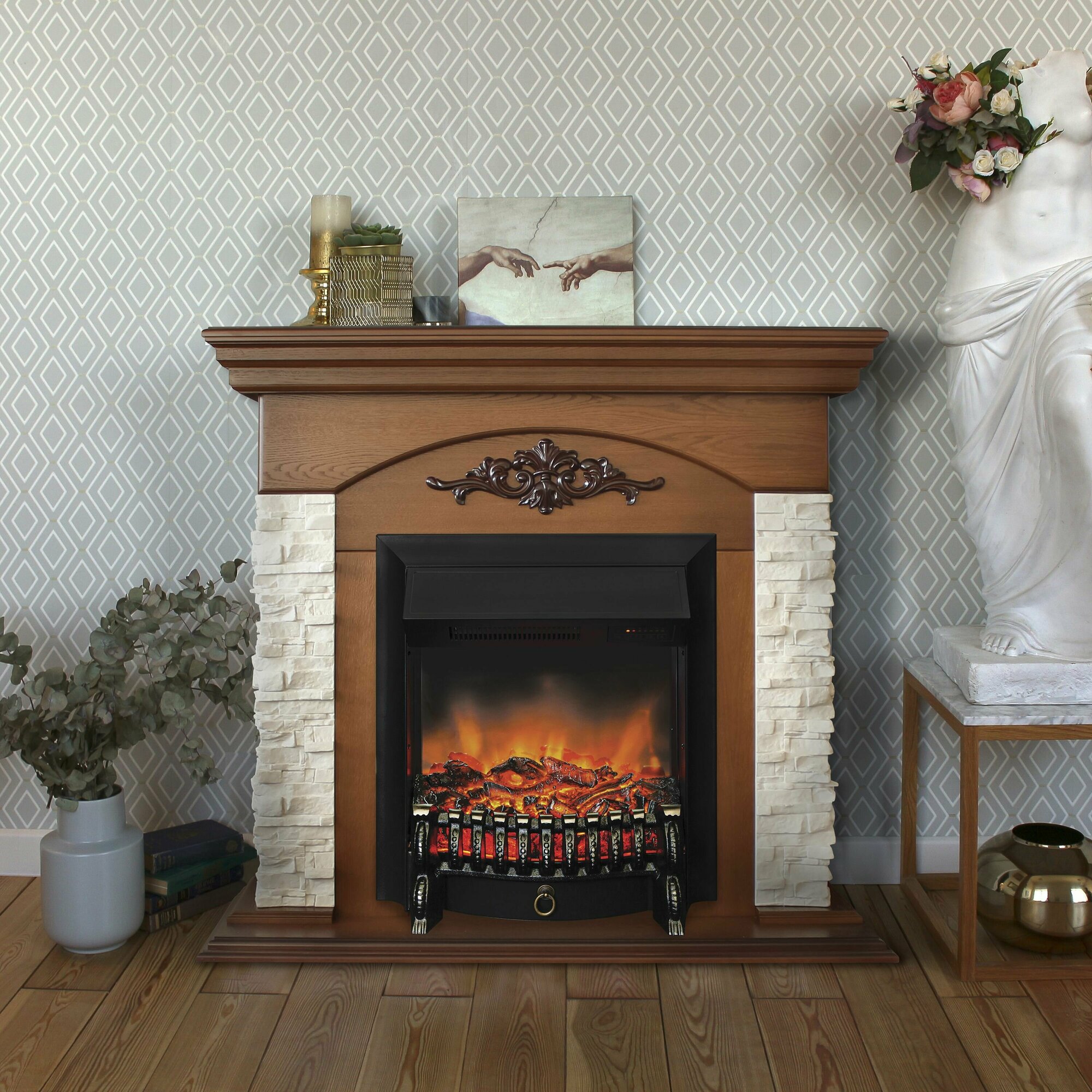 Электрокамин Real Flame Neapolis NT-315 с очагом Fobos Lux Black (орех)
