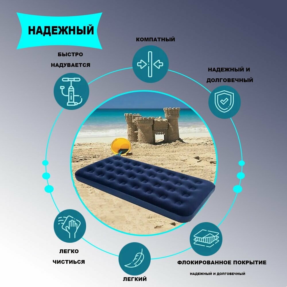 | Плюсы: | Удобно, спина не болит. Быстро надувает встроенным насосом. Высокий, как обычная кровать |