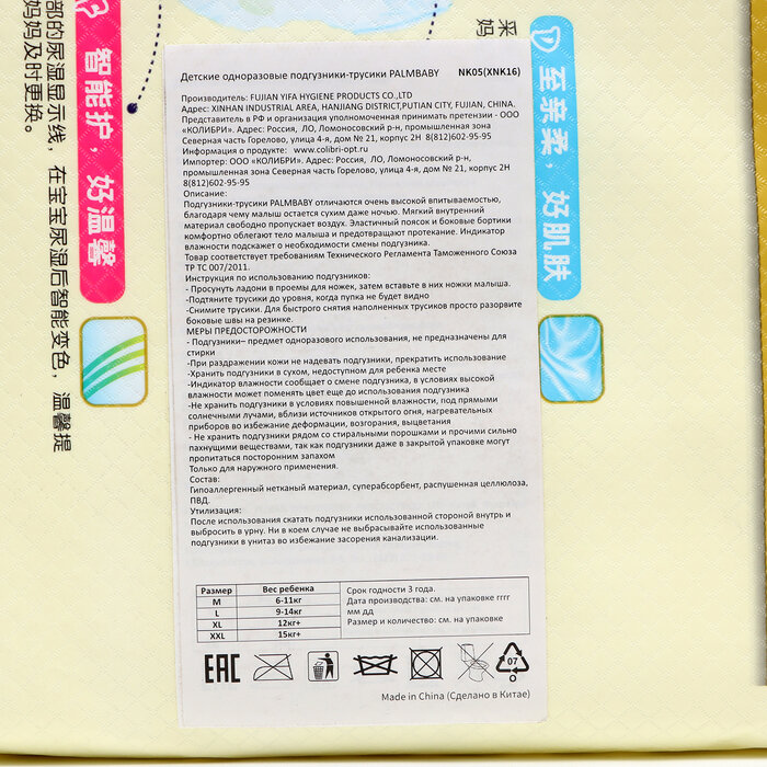 Подгузники-трусики NK05 Palmbaby Стандарт M (6-11 кг), 48 шт.