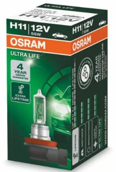 OSRAM 64211ULTHCB Комплект ламп H11 12V 55W PGJ19-2 ULTRA LIFE 4 года гарантии 2шт.(1к-т)