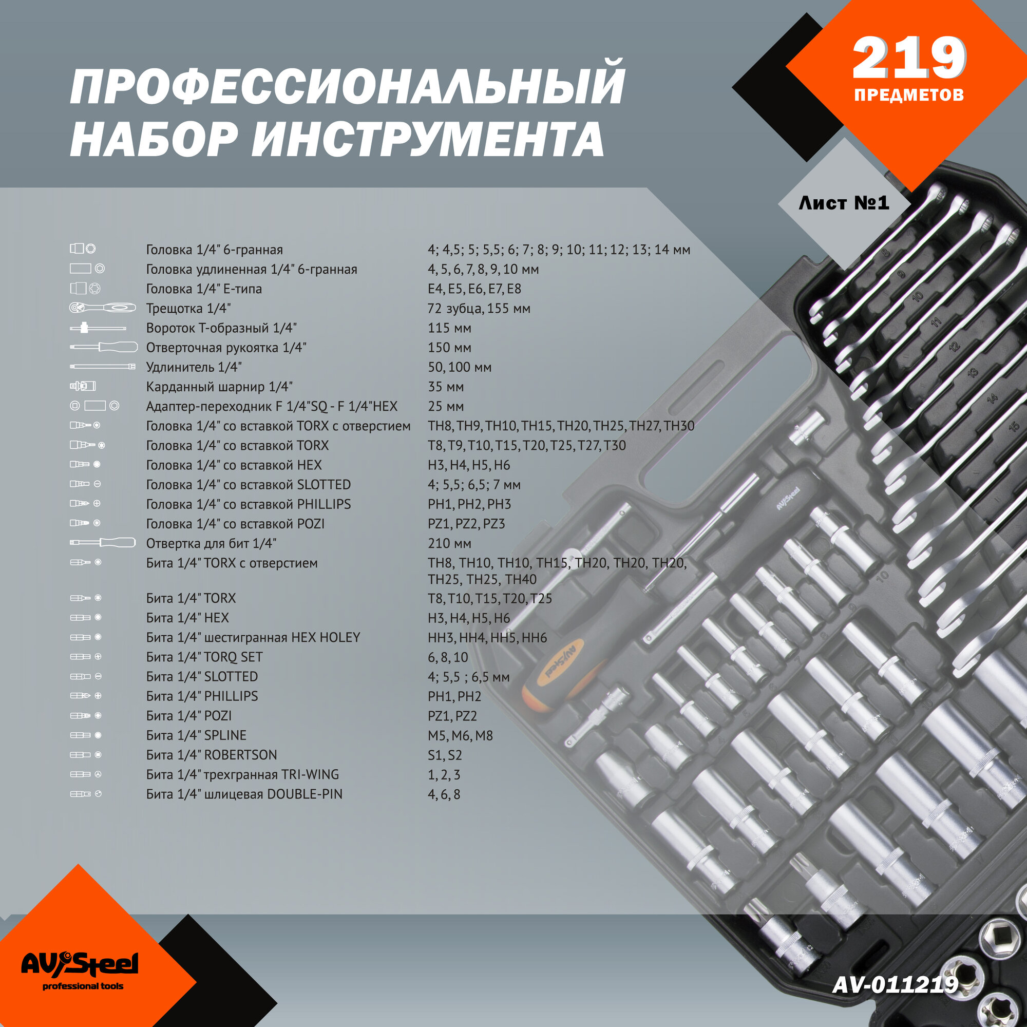 AV Steel Набор инструмента 219 предм. профессион. AV-011219