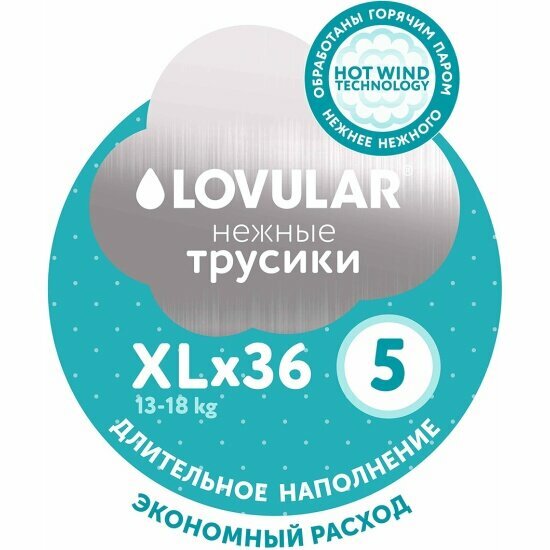 Трусики подгузники LOVULAR детские HOT WIND р. XL 13-18 кг, 36 шт