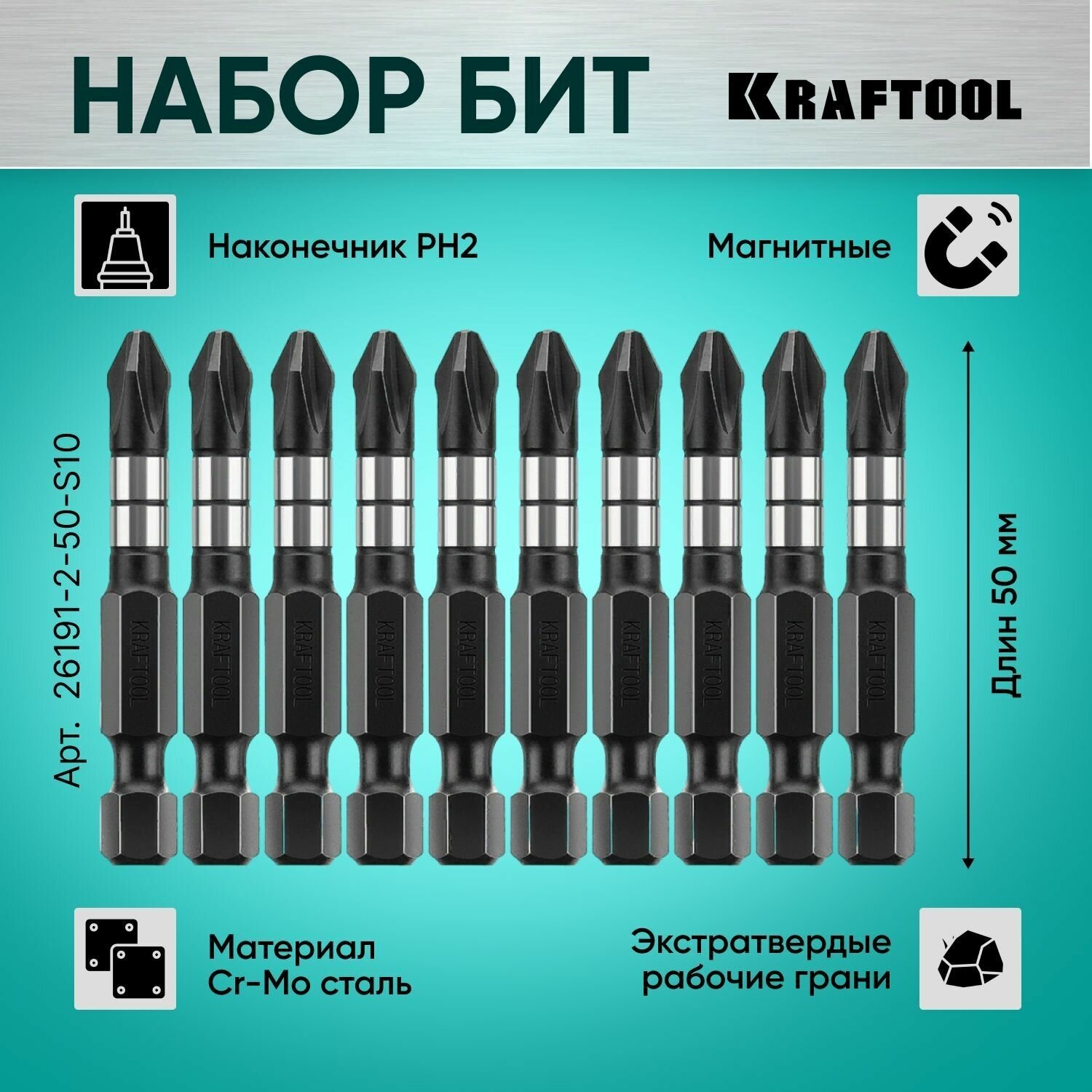 Набор ударных бит KRAFTOOL, PH2, 50 мм, 10 шт 26191-2-50-S10