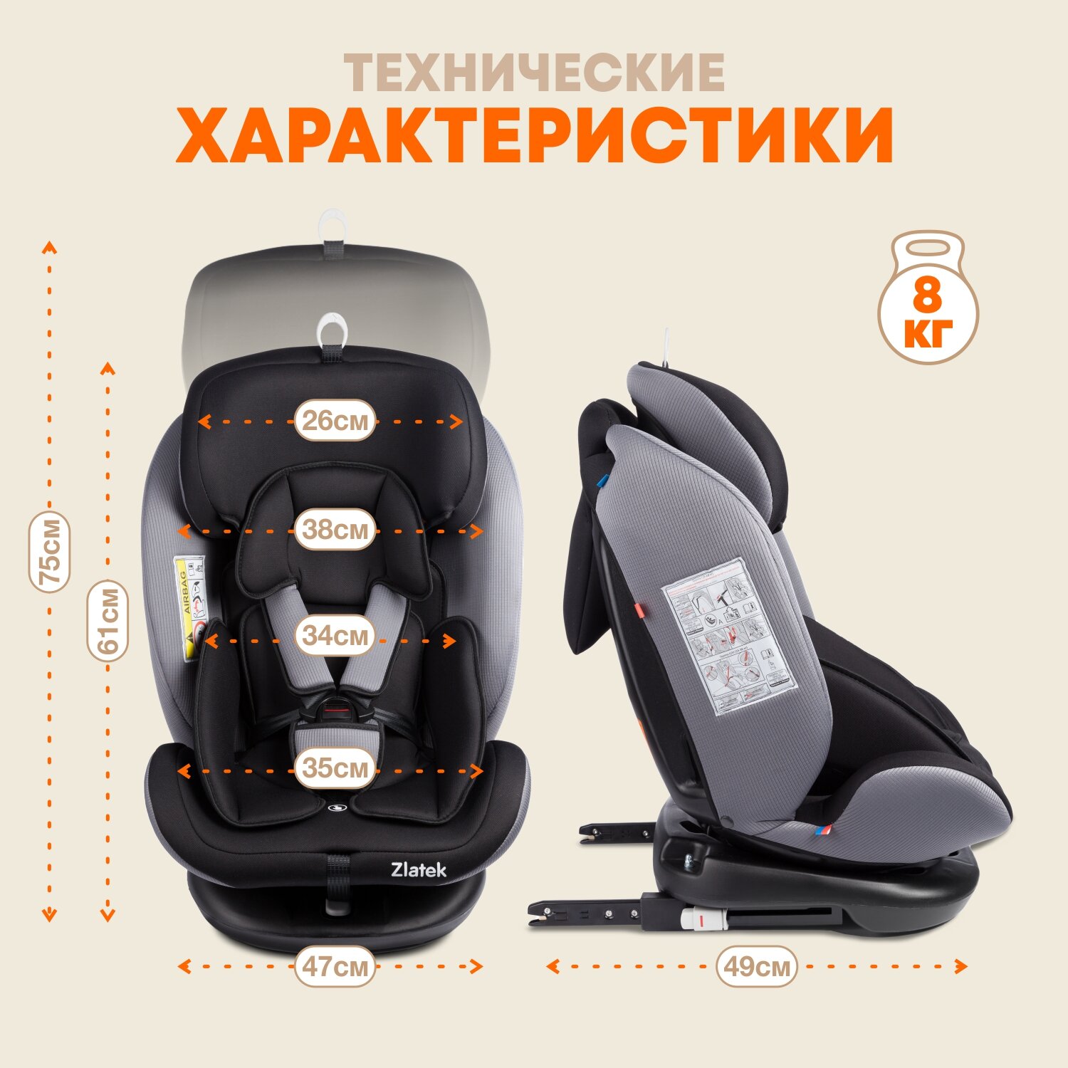 Автокресло детское Zlatek Cruiser Isofix поворотное с рождения до 12 лет / Isofix / 0+/1/2/3/до 36 кг 0-36кг / 0-12лет, серо-черный
