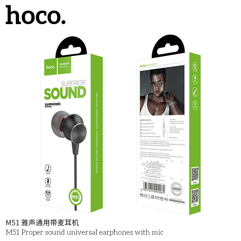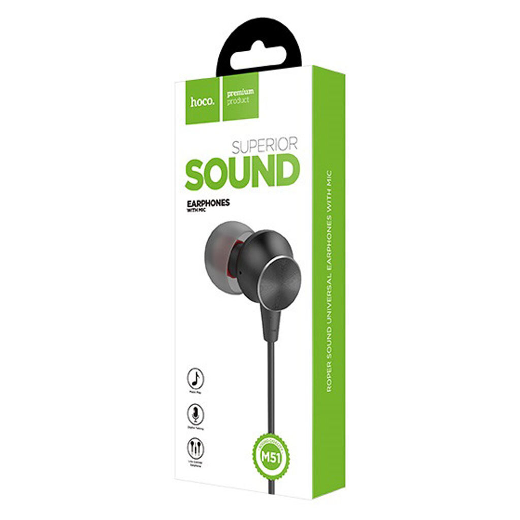 Наушники M51 Proper sound Universal Earphone, HOCO, вакуумные с микрофоном, черные