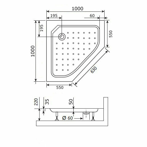 Душевой поддон RGW 100х100х3.5 см h 22 STYLE Белый, Трапеция Ø60 FW5-8 (16180500-11)