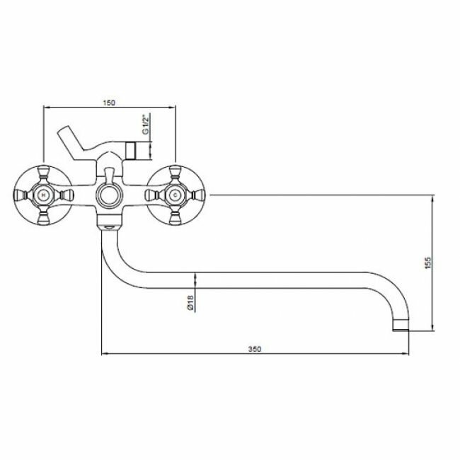 Смеситель для ванны двухвентильный KAISER 11070К, цвет хром