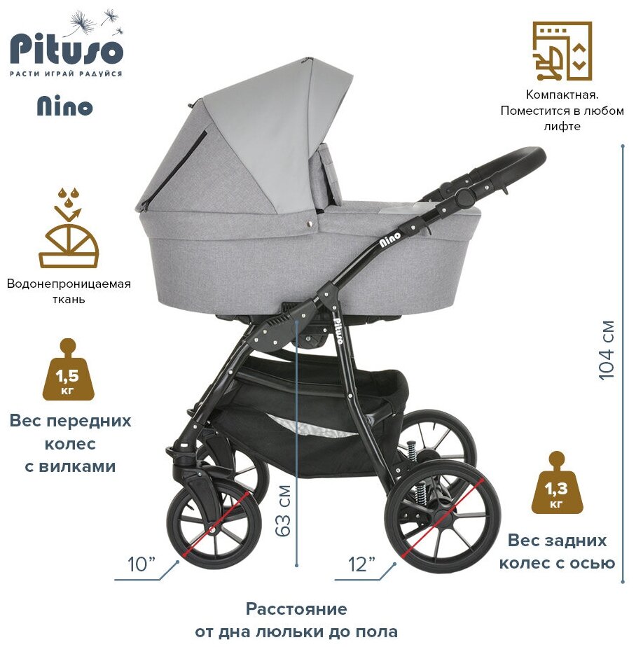 Коляска 2 в 1 Pituso Nino Frost Grey +Кожа Metalic Frost Grey