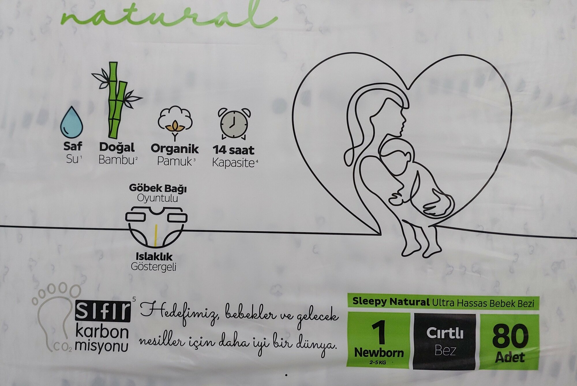 Памперсы Sleepy Natural NB 1, для новорожденных, 2-5 кг, 80 штук, белые