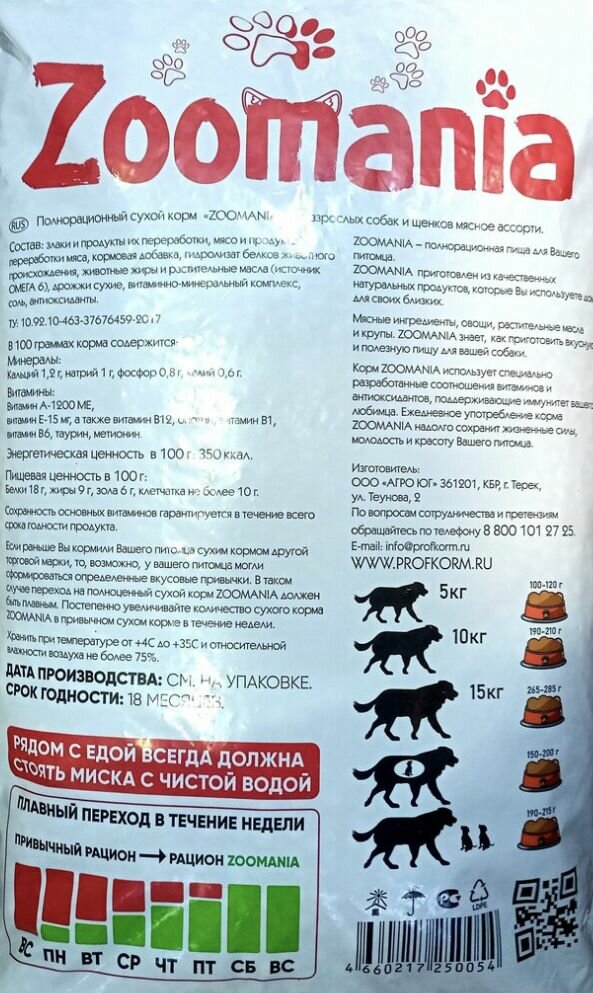 Сухой полнорационный корм Zoomania для взрослых собак и щенят мясное ассорти 10 кг