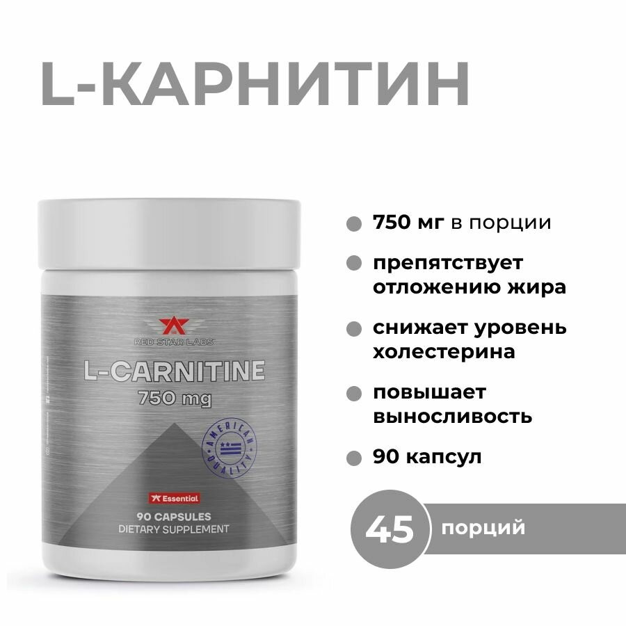 L карнитин для похудения Red Star Labs L-Carnitine, 90 капсул, 750мг интересное: